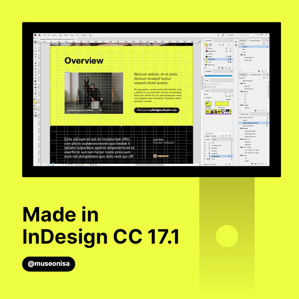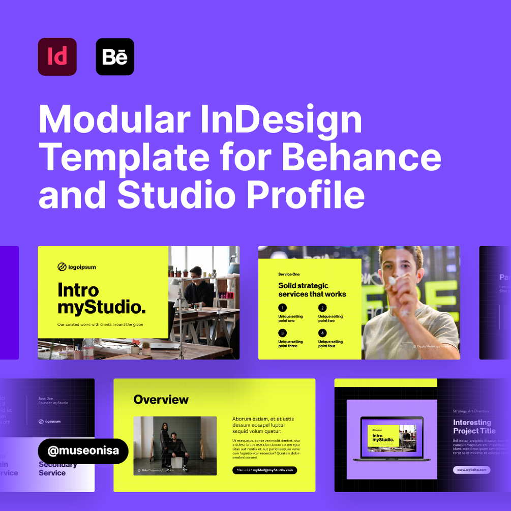 Modular InDesign template for Behance and Studio Profile